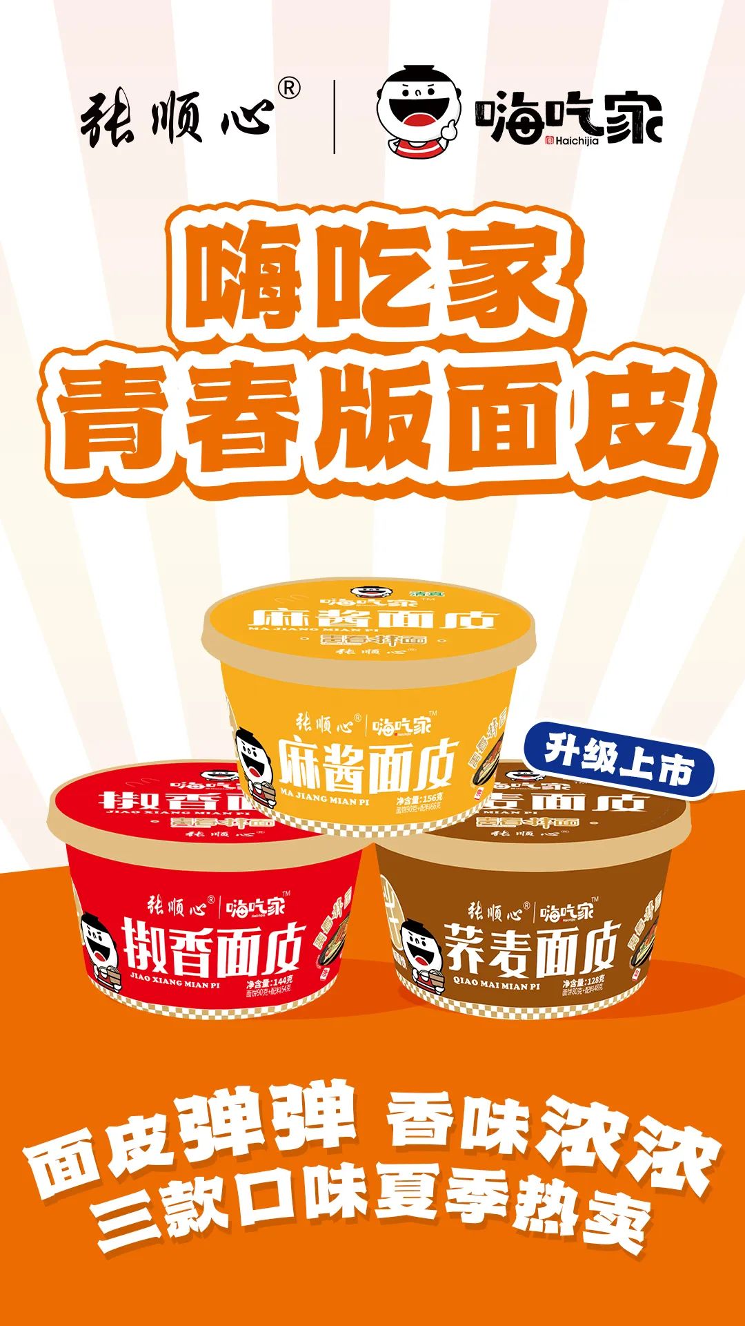 近日,嗨吃家青春版面皮升级上市,据了解,嗨吃家青春版面皮共有椒香面皮、荞麦面皮、麻酱面皮三款口味,是经过市场验证的春夏人气热卖品。面皮采用高温熟化工艺,甩掉油腻感,更加Q弹爽口,无需水煮便捷速享。传统小石磨工艺麻酱醇香浓郁、秘制红油灵魂香辣、加入粗粮更有特色,三种口味覆盖更多消费人群。