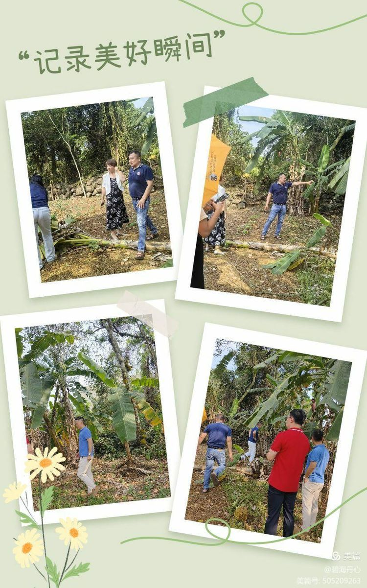 胜日寻芳陌上阡,瓜果飘香枝满头。果园里香蕉、菠萝蜜等水果挂满枝头、果实累累,寓意着九运俱乐部的事业发展也会蒸蒸日上,结出硕果。参观结束前,我们从树上摘了几窜香蕉和一个八成熟的菠萝蜜,留作纪念。