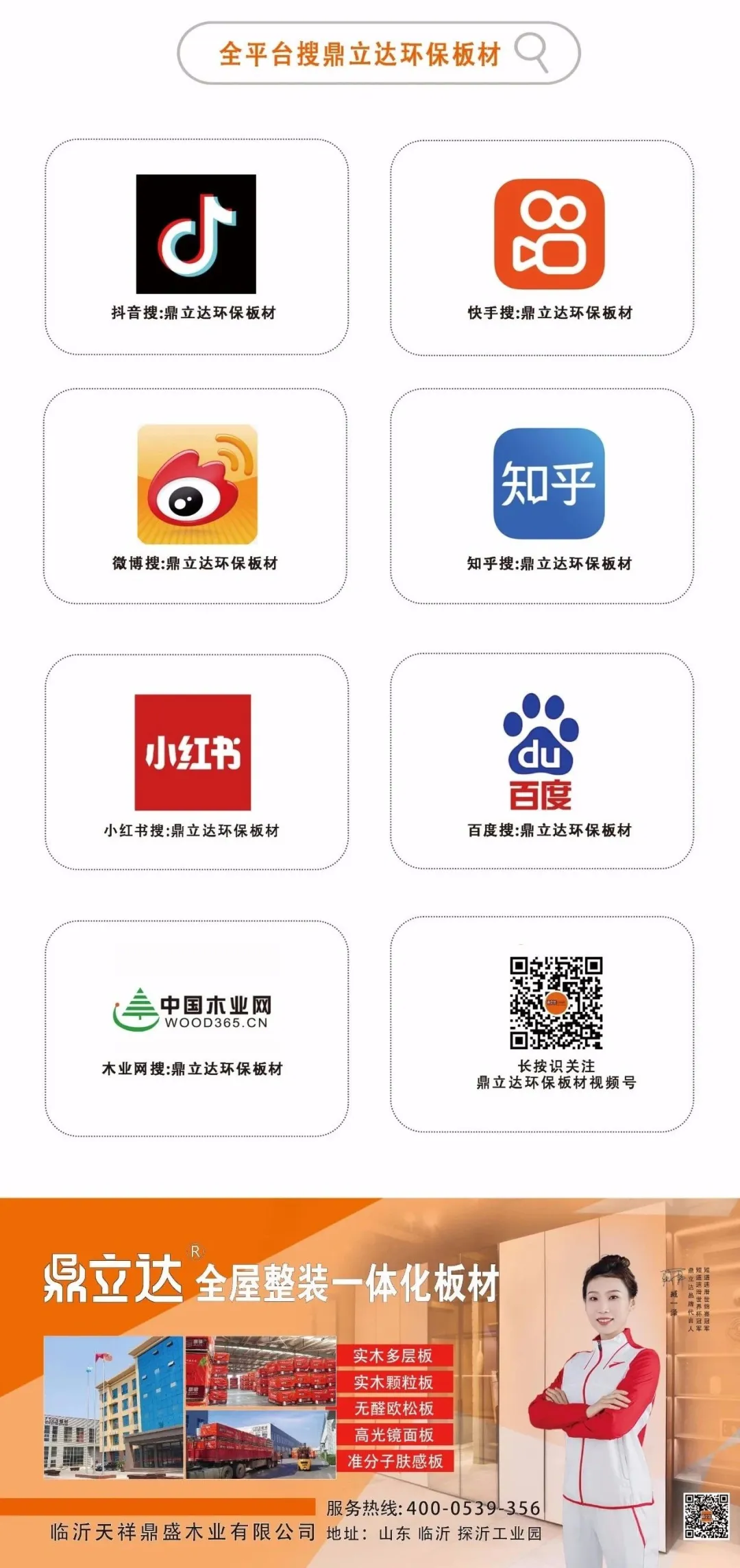 从萝卡美学橡木精板、3D数码艺术美学板、F4星LSB纯香板、ENF级聚能桉香板,包括最新研发的进口橡木基材的同步对花、仿实木皮、深压纹等高定板材,鼎立达率先提出门·墙·柜·圆弧·格栅一体化应用,强化自身优势,实现维度跃升,以全新家居生态链领跑行业,一步步升级,以总部山东临沂为中心,服务全国脉络。