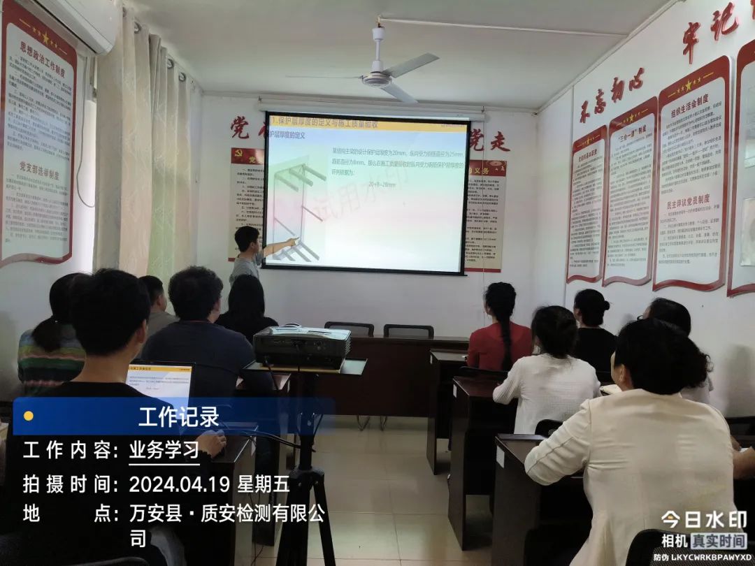 4月19日下午,质安检测公司组织全体职工开展关于钢筋混凝土保护层厚度检测的业务学习活动。