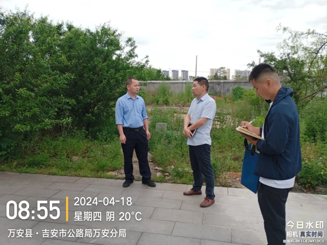 4月16日上午,许安君赴两站项目现场指导调度,了解现场场地情况,商讨土地复绿,沥青原材料用料、进料等相关事宜。