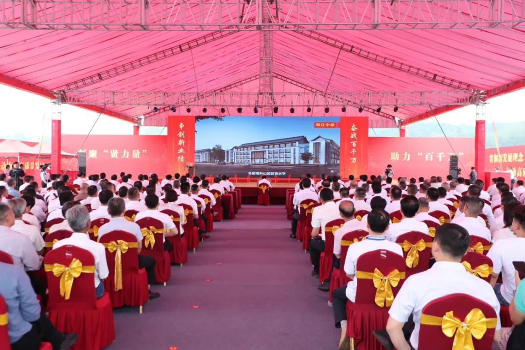 乡贤聚力,干群发力,县镇村同步推进,把“百千万工程”打造成为人民的工程,形成“人人支持、人人参与、人人受益”的良好局面。近三年,乡贤直接投资或协助引进产业项目45个、总投资171.01亿元。乡贤捐建超10亿元的紫琳学院一期和乡贤全额捐建8亿元的坚真文体中心等省重点项目基本建成,6·30扶贫济困日活动认捐9.64亿元。今天动工的韩江中学、留隍镇市民中心、饮水工程、迎宾大道、葛布中心公园、释迦山文旅项目,涉及教育、公共服务、基础设施、产业发展等领域,均由乡贤全额捐资出资建设,项目计划投资总额达27.91亿元。