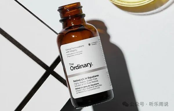 The Ordinary是出了名的原料桶,主打高浓度低价格。其产品不添加其多余的成分,针对皮肤的不同问题研制护肤品,多为酸类、油类、精华类产品。他家的1%视黄醇精华液含有1%视黄醇,可以推迟肌肤老化过程,减轻色素沉着,改善粗糙暗哑,平衡油脂分泌。