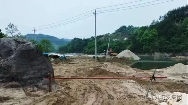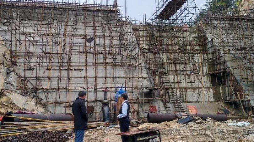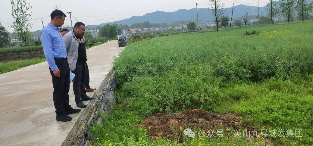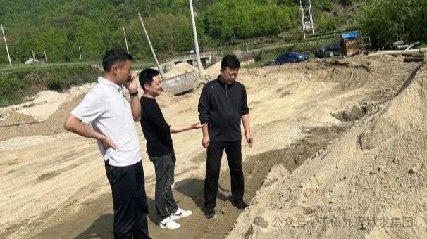 集团党委副书记、副总经理张伟同开源再生公司经理王定在松山铺水库查看水库清淤砂转运进度。