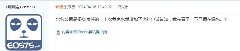 该网友发帖称,自己长期空关的一套房子近日收到了一张来自水务产业公司的温馨告知,提醒屋内用水量出现显著增长。经检查,果然发现厕所水箱在漏水,好在发现及时。
