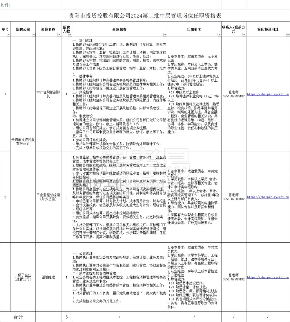 贵阳市投资控股有限公司2024年中层管理人员社会公开招聘简章