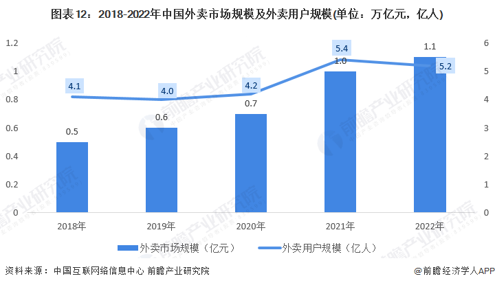餐饮外卖市场是全球去塑政策首要针对的领域之一,主要使用纸浆模塑餐饮具替代现有相关塑料产品。随着互联网技术的不断进步和消费者消费便捷化需求的进一步提高,我国外卖行业得到迅猛的发展。根据中国互联网络信息中心数据显示,2022年中国外卖市场规模达到1.1万亿元,2018-2022年复合增长率超过20%;2022年中国外卖用户规模达到5.2亿人,较2018年增长了26.83%。伴随着外卖服务场景的拓展和用户需求的进一步深化,餐饮物流的持续优化,以及居民消费的进一步提升,预计外卖市场在未来几年仍将保持持续强劲的增长态势。