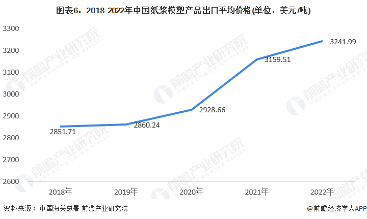 3、中国纸浆模塑产品远销海外,产品出口“量价齐升”