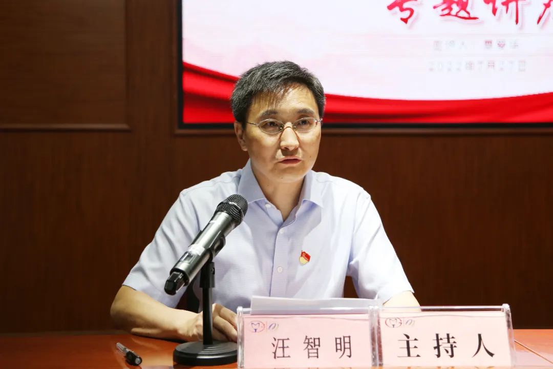 茅台集团总经理助理、保健酒业公司党委书记、董事长汪智明出席讲座并讲话,保健酒业公司党委领导班子冯铖、周辉、杨天宝、陈锐、周丽娟参加讲座。