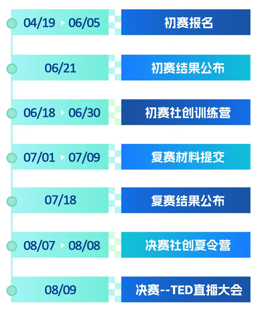 本次大赛将采用TED演讲的形式进行决赛展示。这样的设置允许每个团队在舞台上进行简短而精彩的演讲,直观地展示他们的项目创意和社会影响。通过有力传达清晰的信息,让参赛者的激情和创新点能够更加有效触及评委和全球观众,增强了比赛的观赏性和教育价值,更加激励所有参赛者与观众的创新和思考。