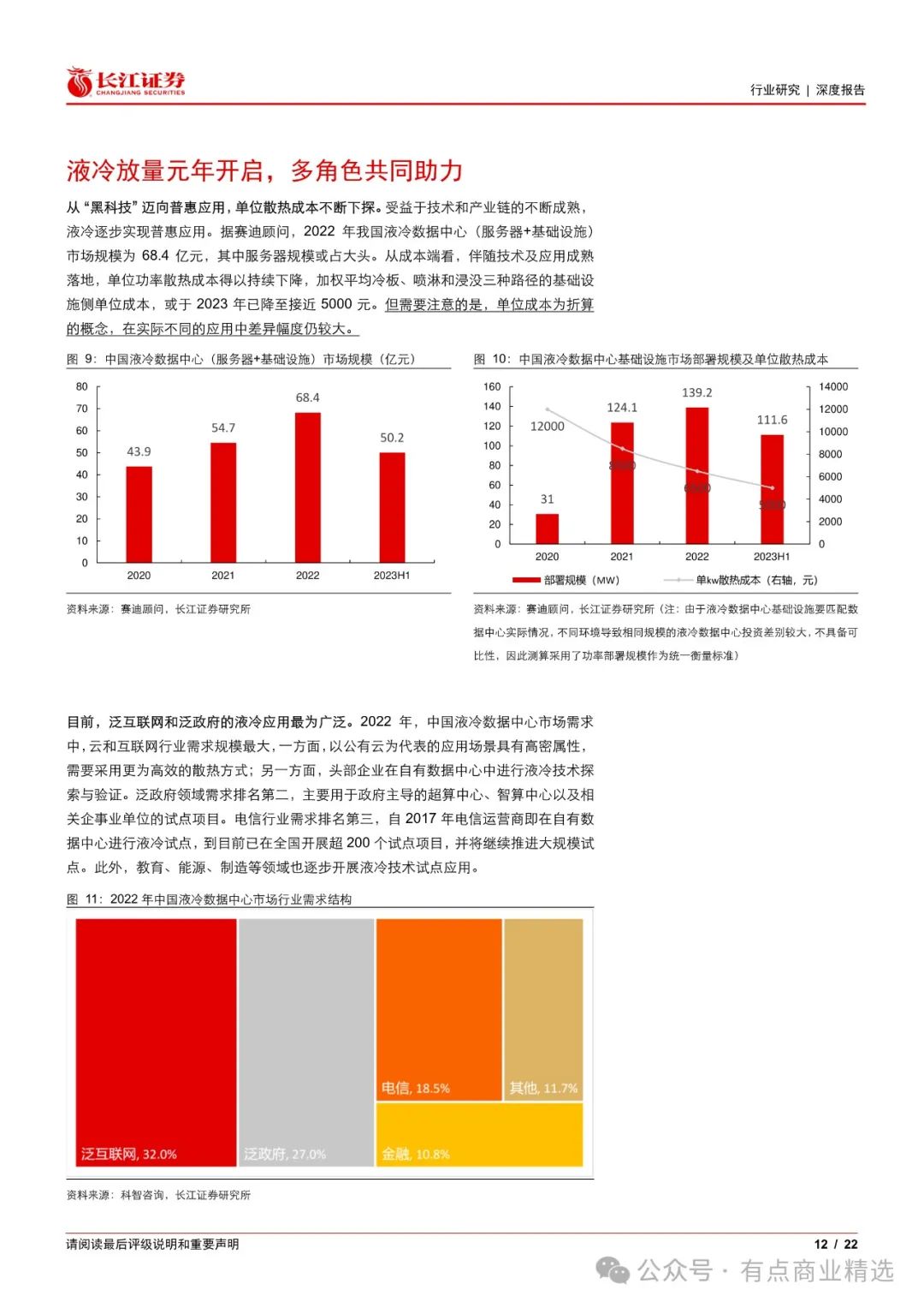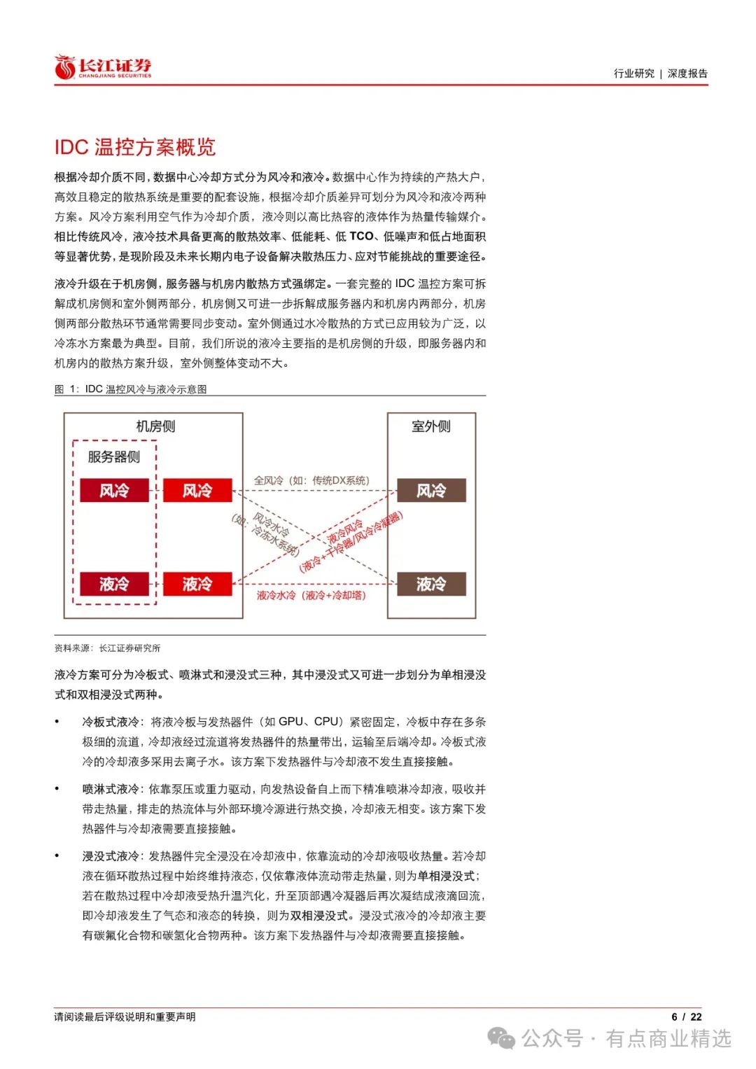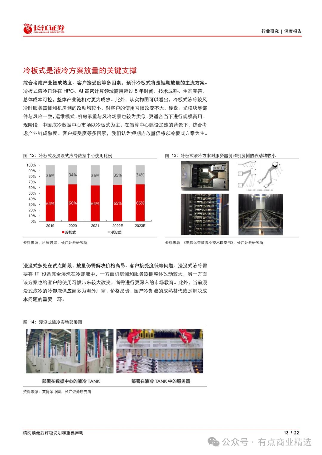因此对应环节的升级和变化将带来新市场增量。服务器侧,国内厂商验证窗口期打开,率先进入供应链的厂商后续有望占据稳定市场份额;机房侧,可靠性是第一要义,客户资源是重要加持,全链条布局能力也是加分项。当下,在液冷趋势具备高确定性的背景下,建议重点关注卡位优势较好、能够率先实现业绩兑现的玩家。