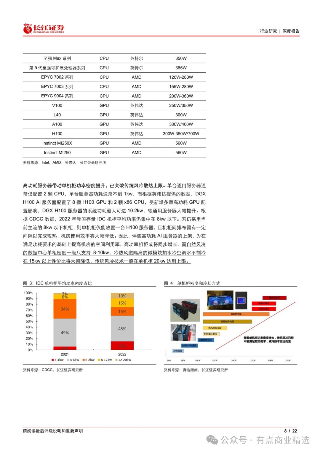 芯片功耗持续提升、PUE 管控趋严以及对 TCO 成本的追求趋势不可逆,因此对于高效的液冷散热方案的需求具备高确定性。在芯片厂商和电信运营商的共同推动下,液冷放量元年开启。液冷升级主要在服务器侧和机房侧,