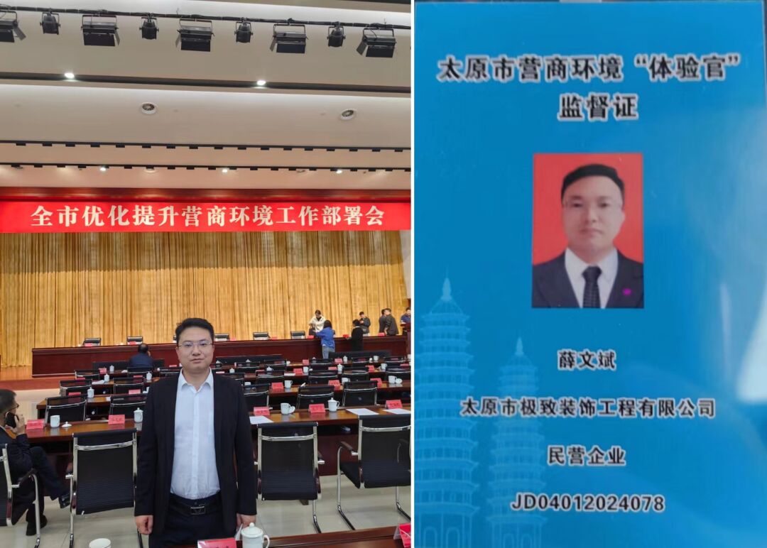 同志主持,山西省委常委、太原市委书记韦韬出席并作重要讲话,市直部门、县(市、区)主要负责同志出席了会议,我会副会长单位太原市极致装饰工程有限公司(林氏木业)董事长薛文斌出席此次会议,同时被评为太原市2024年营商环境“体验官”。