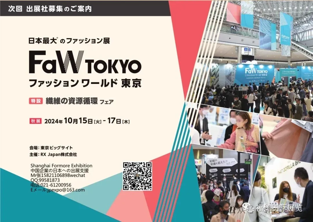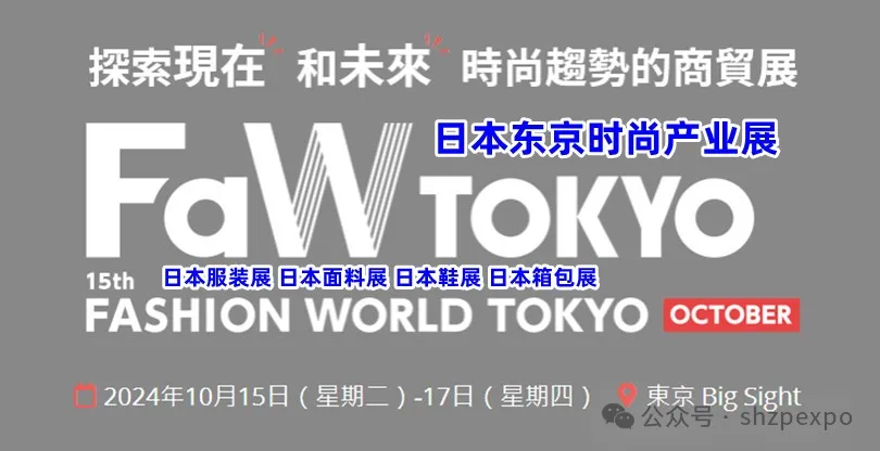 日本规模最大的时尚展——日本东京时尚流行成衣服装服饰,箱包,鞋类,饰品配件,布料辅料海外面料,时尚科技相关产品展览会 FASHION WORLD TOKYO ( FaW TOKYO ),将于2024年10月15-17日在东京国际展览中心(Tokyo Big Sight)隆重举办春季展!预计世界36国 1,250社出展!日本最大のファッション展!东京时尚产业展!