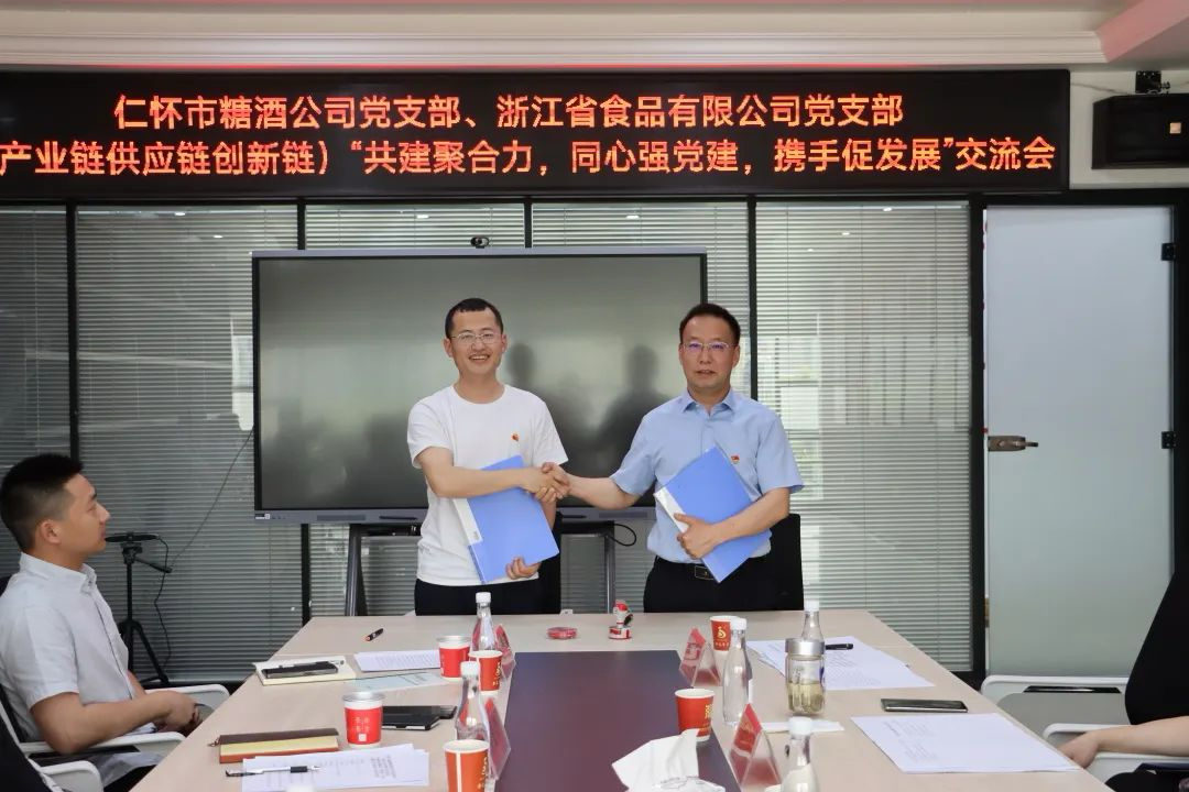 以党建拓宽企业“朋友圈”,为构建党建同心桥赋能。省食品公司支部创新党建模式,引领公司发展,采用“请进来”“走出去”的方式加强业务沟通交流。2023年5月,食品公司支部远赴贵州考察当地酒业市场,与仁怀市糖酒公司党支部联合召开产业链供应链创新链党建交流会。通过实地的调查研究和现场交流不仅巩固了企业业务合作的“朋友圈”、“信息网”,更加促进了双方在党建工作上的相互对接,相互融合,相互促进,为公司扎实推动双融合共促工程提供有力的组织保障。2023年6月,邀请仁怀市糖业烟酒公司支部来浙江开展联建活动,循着总书记足迹深化党性教育。让党建工作资源跨越黔浙千里建立起“党建同心桥”,推动党支部从“单兵突进”向整体提升转变,真正实现党员共管、活动共搞、资源共享、难题共解、文化共融,推动党建和业务工作互融互促、同心同向、见人见事、虚实联结、提质增效,让主题教育在“红色党建联盟”中走得更扎实,走得更有实业特色。