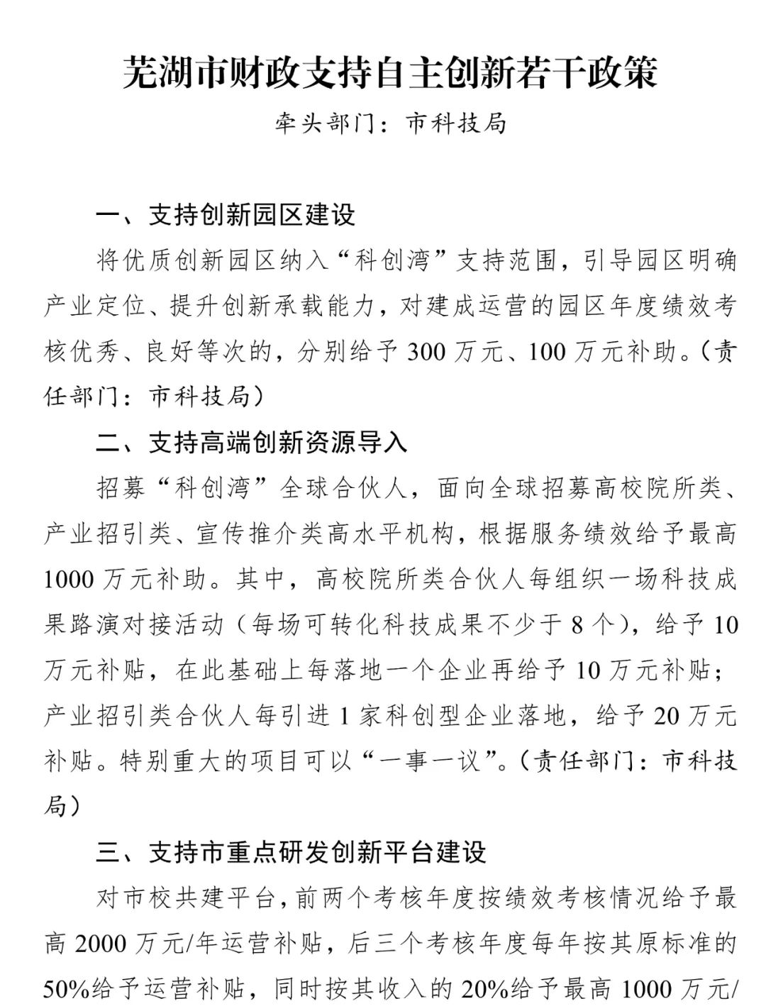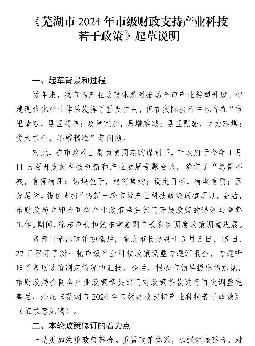 2.《芜湖市2024年市级财政支持产业科技若干政策》起草说明(公开)