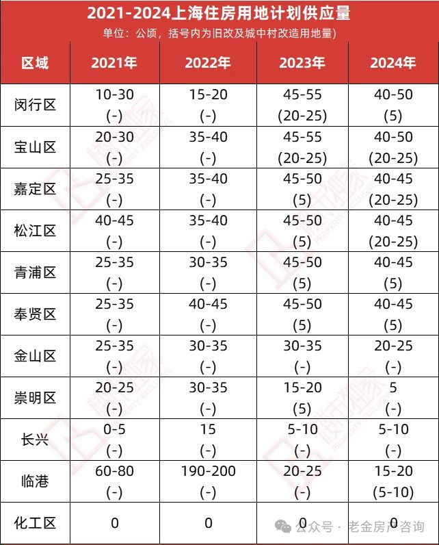 从郊区的供地计划来看,闵行、宝山、嘉定、松江、青浦、奉贤,都是供应大户,临港15-20公顷的供应