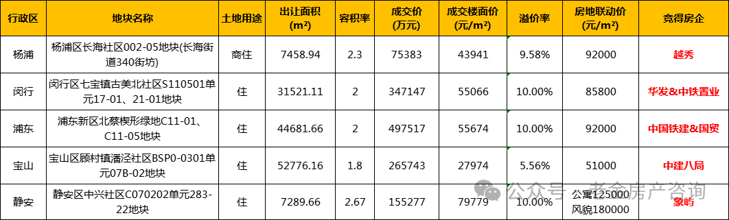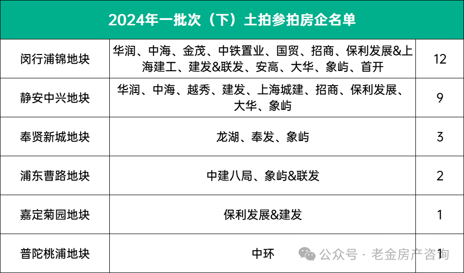 以及下半场的闵行浦锦地块(12家报名)和静安中兴地块(9家报名)
