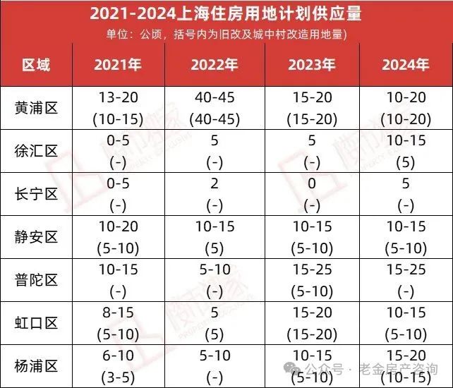 除了普陀区,其他去的供应量大多为旧改及城中村改造
