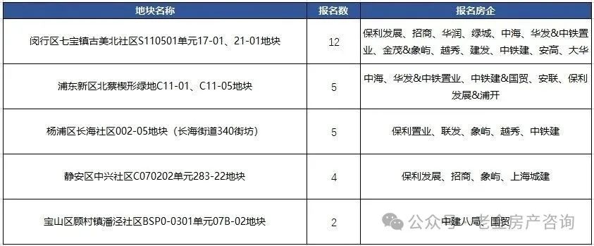 其中比较热门的地,是上半场的闵行古美地块(12家报名)