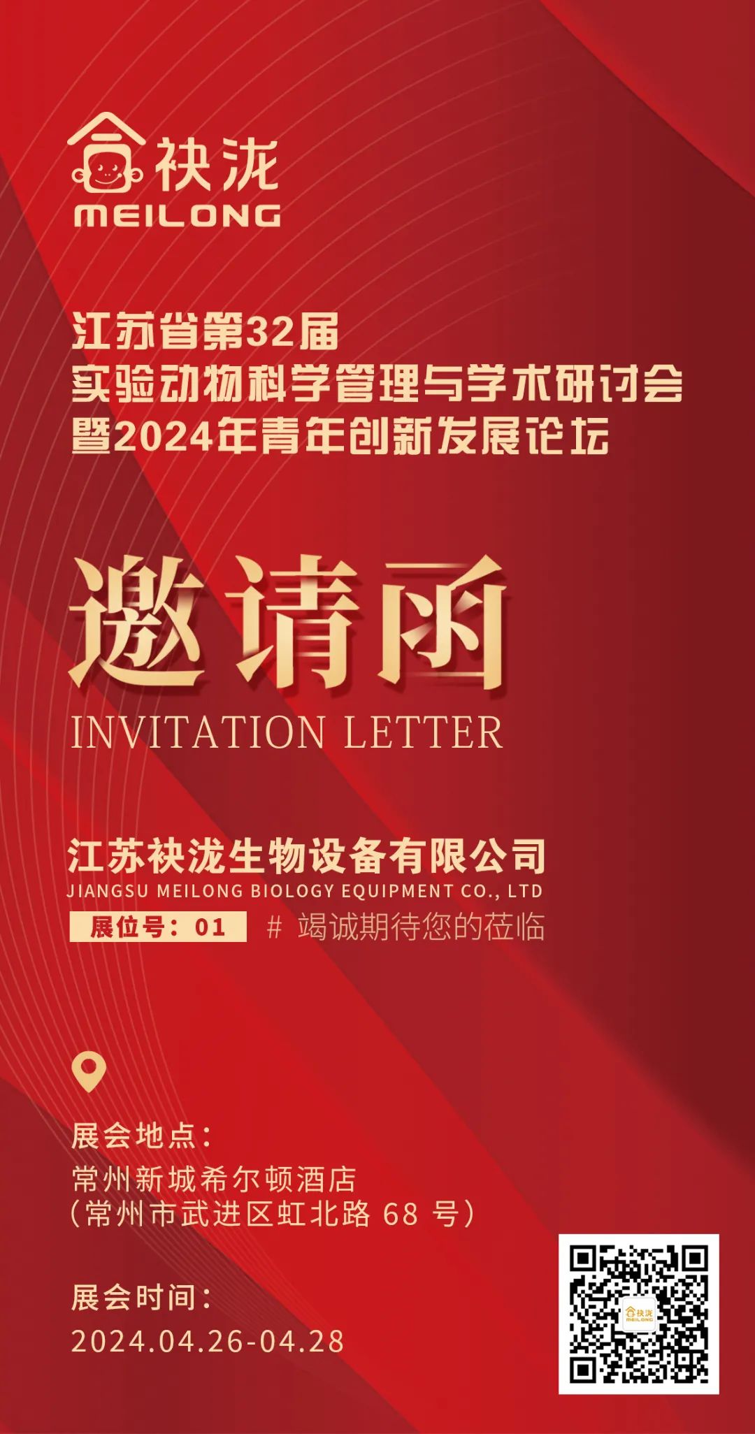 会议邀请 | 江苏袂泷生物设备有限公司邀您参加江苏省第32届实验动物科学管理与学术研讨会稽2024年青年创新发展论坛