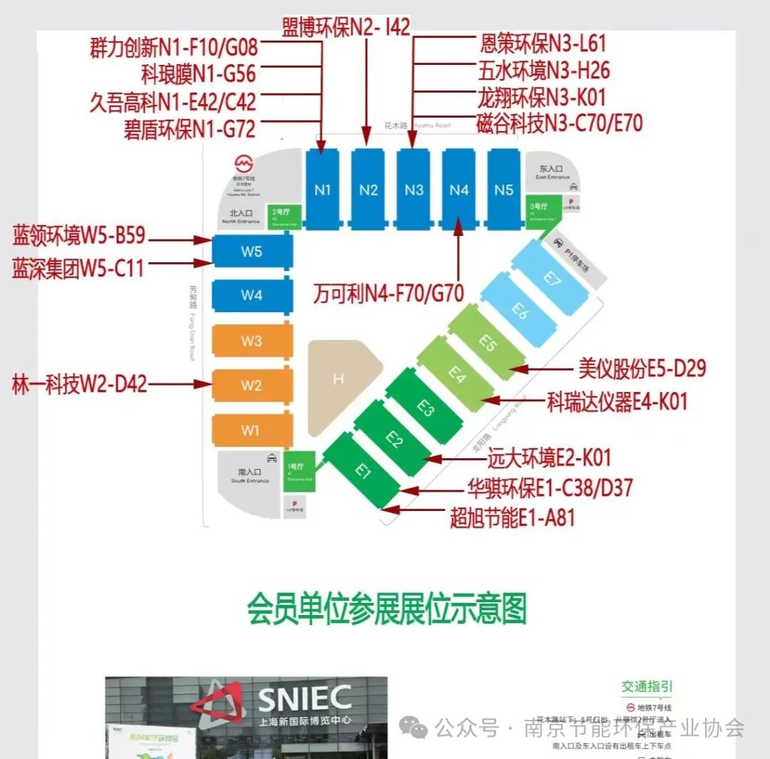为了便于会员零距离接触行业的最新动态本次展会,在主办单位的支持下,我会联合南京绿色低碳创新联盟,前后三天组织了一百多人陆续前往观展。为了加强会员间的高效交流,协会绘制了参展会员单位展位图。现场签到的参观嘉宾还获得了交通补贴、定制纪念胸针和伴手礼。