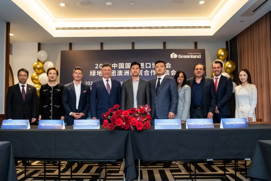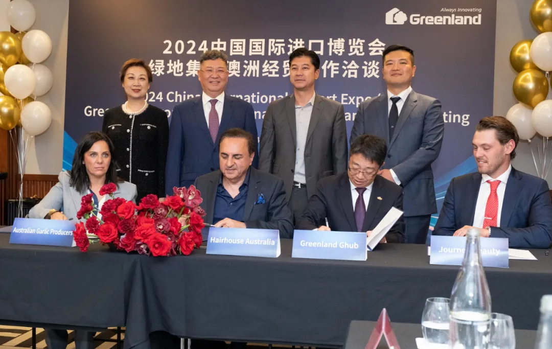 会上,绿地分别与澳洲领先的出口贸易企业Pancific Trading Alliance、南半球最大的美容美发企业及美容美发雇主Hairhouse Australia 、南半球最大的大蒜种植企业及大蒜保健品企业Australian Garlic Producers、澳洲知名高品质意大利风格乳酪企业That's Amore Cheese、澳洲创新纯天然洗护品牌Journey Beauty、澳洲知名有机椰奶椰汁企业CocoOne达成第七届进博会参展合作及采购签约。绿地集团董事长、总裁张玉良出席活动。