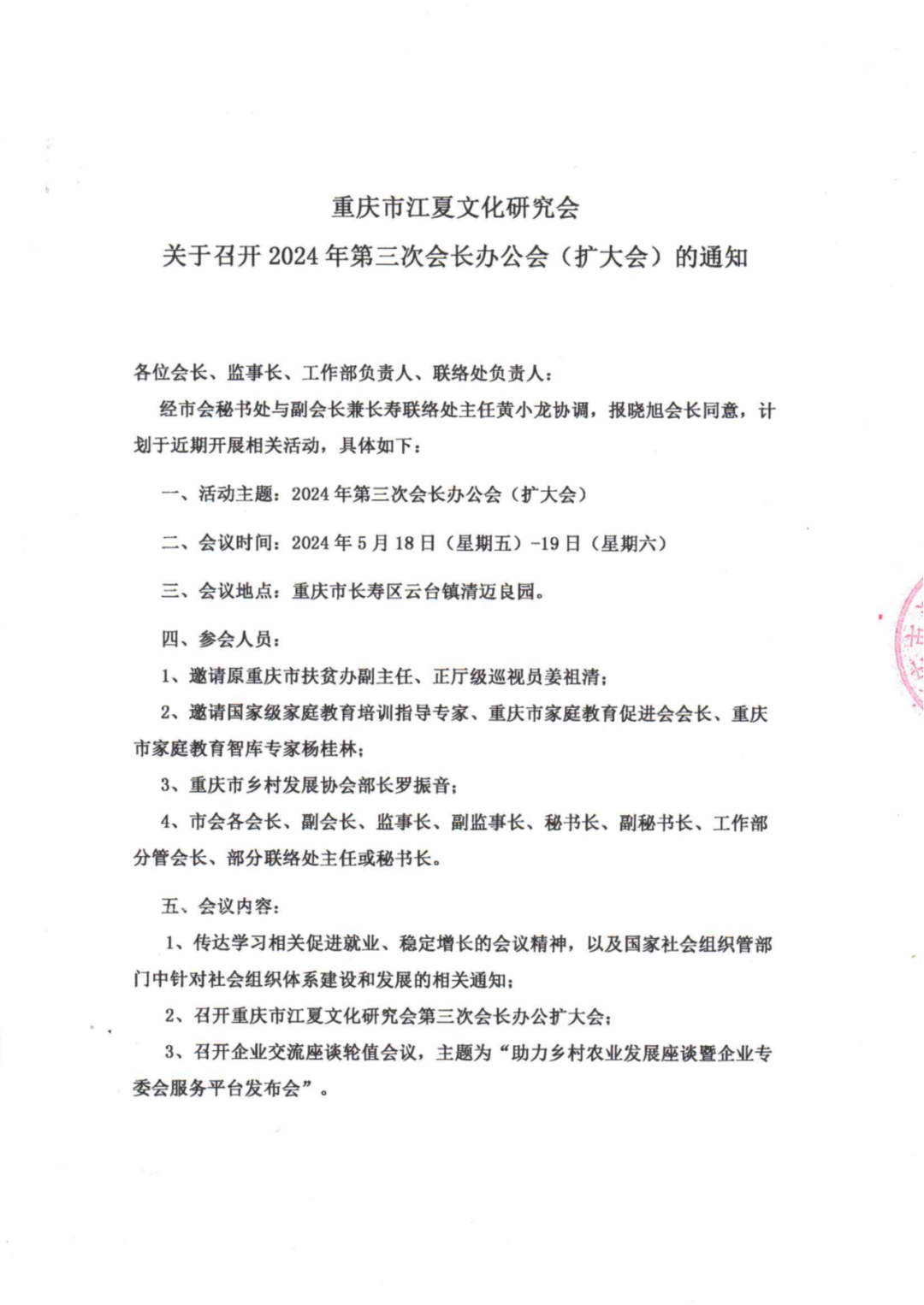 关于召开2024年第三次会长办公会(扩大会)的通知
