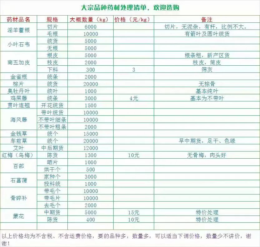 1、地榆片,大黄片20吨(全检包含量)、水根个80吨、水根个20吨(全检包含量)、酒大黄包含量熟大黄片,大黄四方丁
