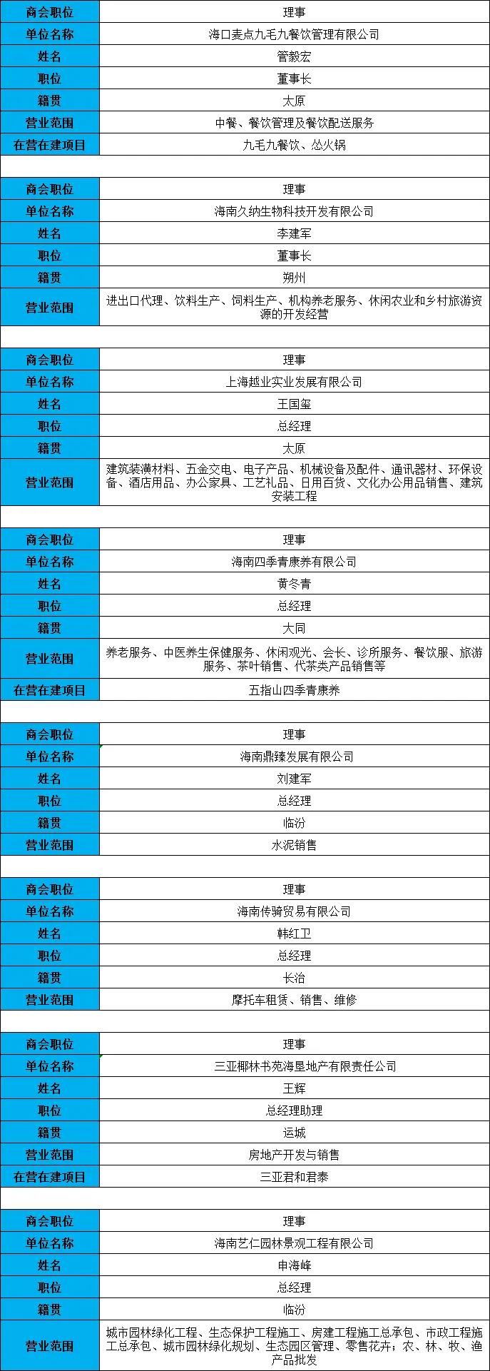 商会发布|海南省山西商会会员资源对接目录 (2024年4月)