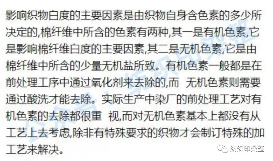 加蓝来压制黄色光只是给人视觉上造成了改变,实际上织物变得更灰暗,明度有所降低,因此,加涂料和直接染料等只能用来调整色光,使织物看起来很白,而不能真正提高织物的明度(白度)。