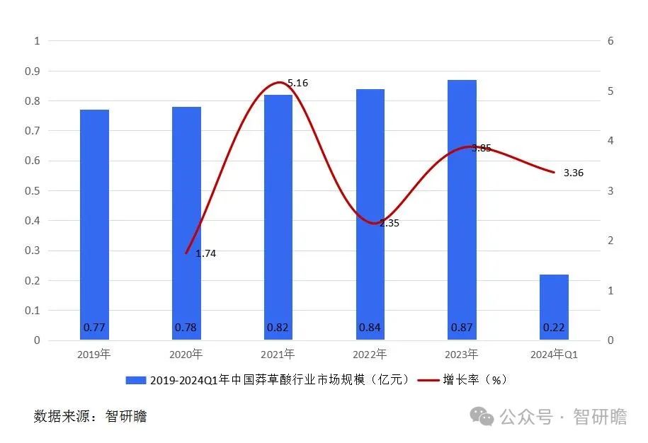 图表:2019-2024Q1年中国莽草酸行业市场规模