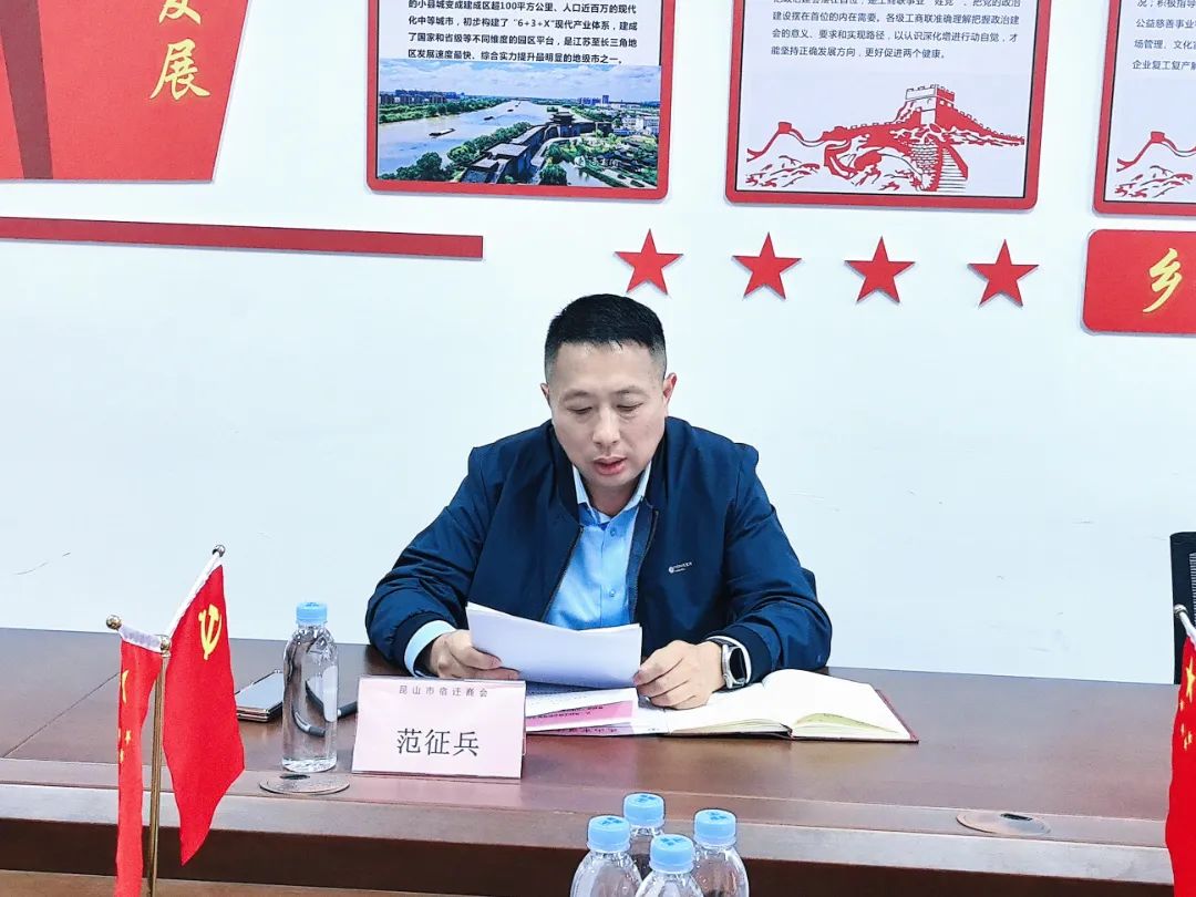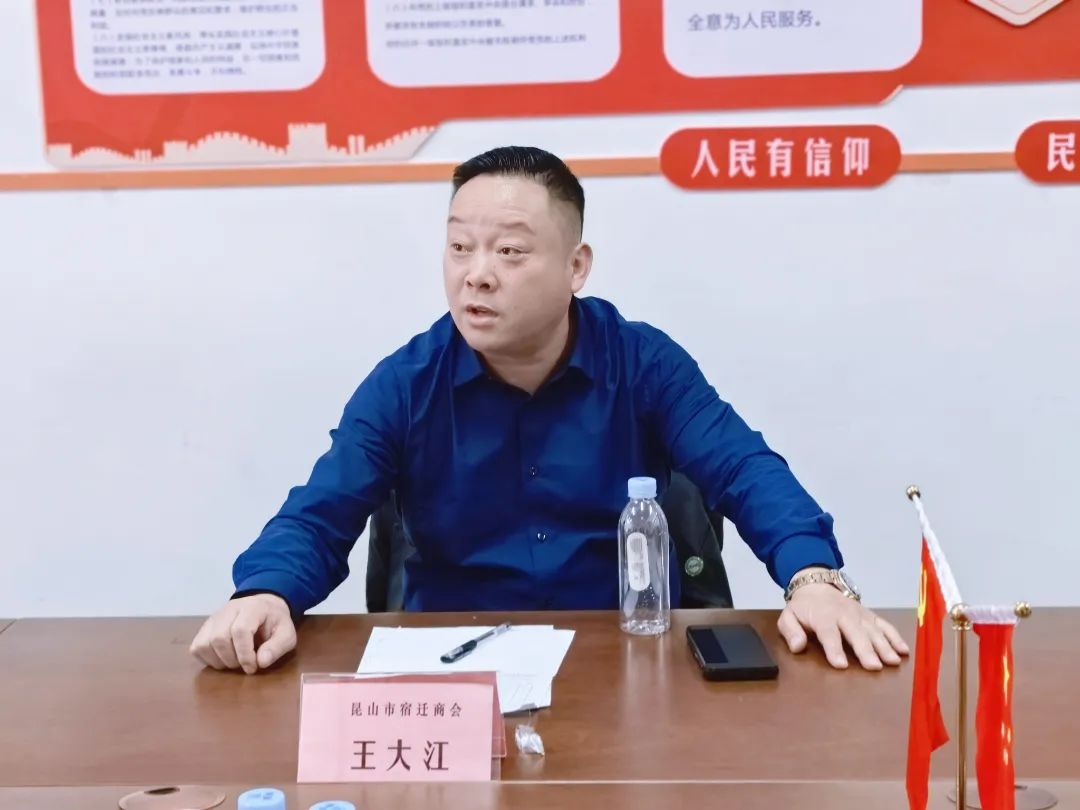 执行会长王大江首先对各位会长百忙中抽出时间支持商会工作表示感谢,并就近期工作提出了要求。接下来的工作中,商会要继续发力,做好党建、会员服务等工作。一、与共建单位做好主题教育活动,开展红色服务日活动,以高质量党建引领商会高质量发展。二、创新活动方式,组织符合创新发展的、服务会员企业发展需求的特色活动,提升商会“窗口形象”;三、坚持以服务会员企业为重点,把会员服务继续做深做精,通过开展具有特色的党建活动、会员活动,形成“商会活动,会员走动”的良好氛围。四、相信在大家共同努力之下,昆山市宿迁商会定会越办越好。