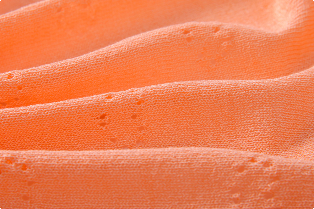 光洁亮丽、柔软抗皱的高品质丝光纱线。织物手感柔软,吸湿透气,垂感颇佳;面料清爽、舒适、柔软、吸湿、透气性能好,光泽度极佳。