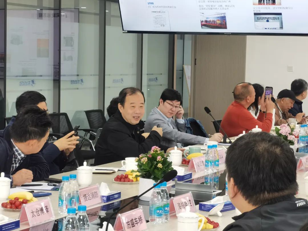 钟琼华董事长对苏州市汽车工业行业协会一行的来访表示热烈欢迎,感谢协会一直以来对苏试试验的支持。会上,钟董介绍了苏试试验的企业发展历程、产业布局、业务能力、技术创新等,并对新能源汽车产品检测能力和服务情况作具体说明。随着新能源汽车产销量的持续增长和检测需求的不断上升,苏试试验构建了从零件、部件到整车的全产业链检测能力,致力于打造工业产品质量可靠性试验验证与综合分析公共服务平台,满足客户对质量和安全的高标准和高要求,加快实现产品改进升级,促进新质生产力发展。