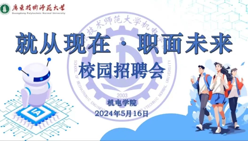 感谢贵单位一直以来对我院毕业生就业工作的关心与支持!为搭建各用人单位和我院毕业生的交流互动、双向选择平台,加强学校与各用人单位的交流与沟通,满足各用人单位人才战略储备的需求,广东技术师范大学机电学院拟定于2024年5月16日(星期四)举办“就从现在,‘职’面未来”校园招聘会。在此,诚挚邀请广大用人单位报名参会!