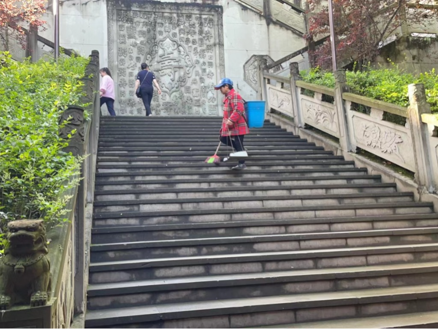 圆觉洞景区日常打扫、巡查。