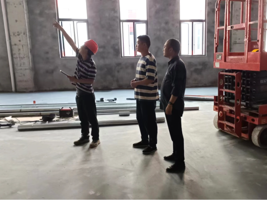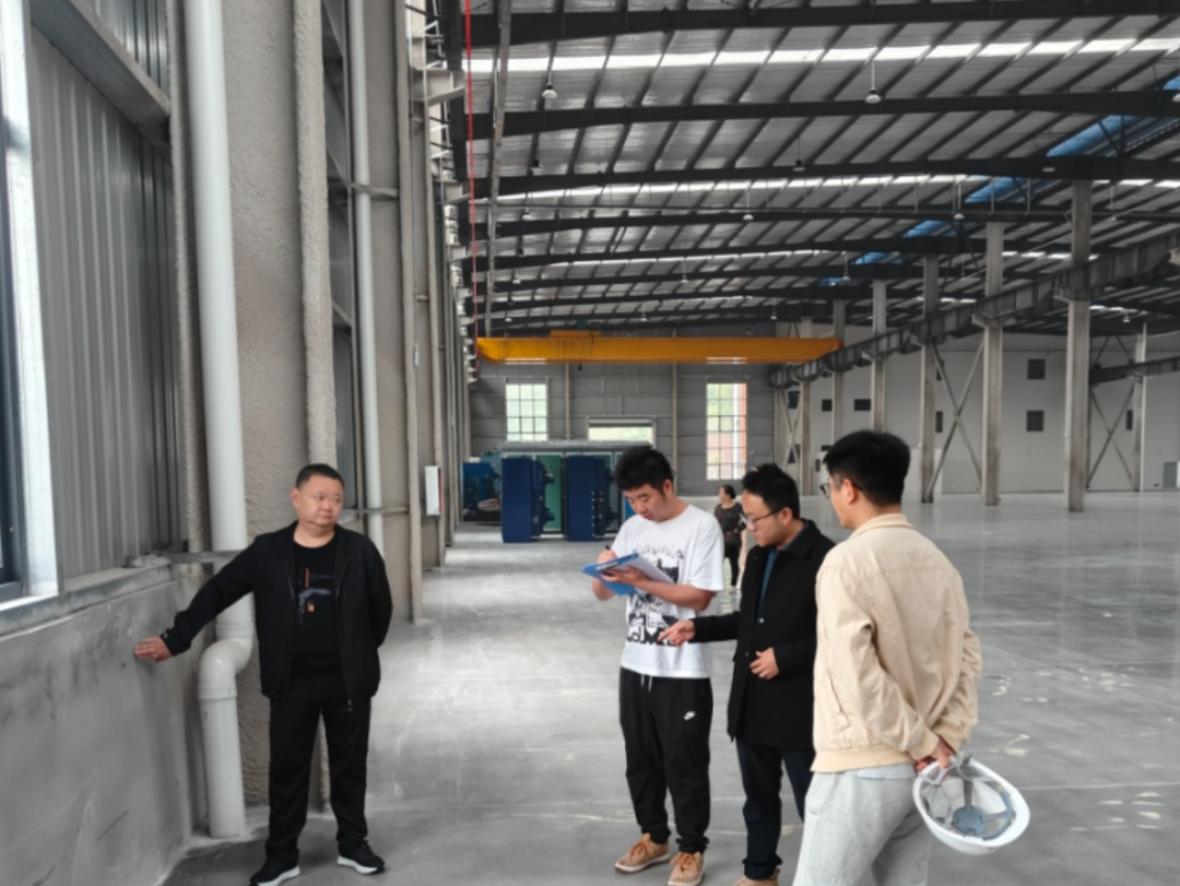 中安集团党委副书记周刚会同荣安实业公司查看周礼薯业产业融合示范园标准化厂房建设情况。