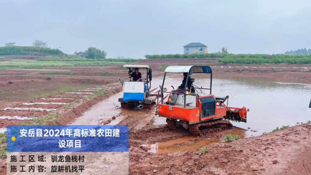4月15日-4月21日,高标准农田建设项目驯龙镇菩提村、鱼栈村、阳虹村,千佛乡龙铁社区开展清表施工、田形平整、旋耕机找平、田埂夯筑等工作。