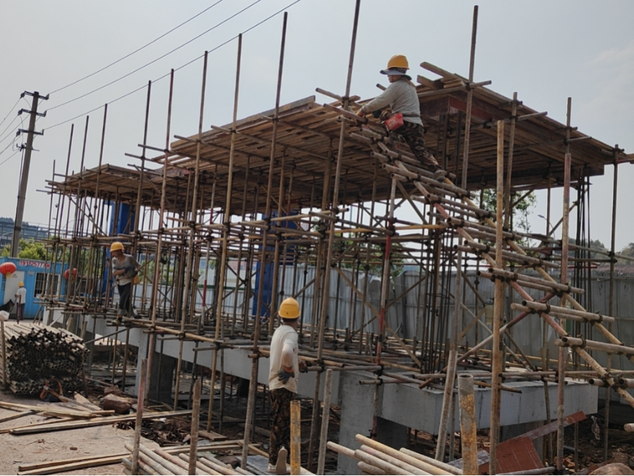 ▼4月15日-4月21日,10号楼2层梁板砼浇筑、外架搭设