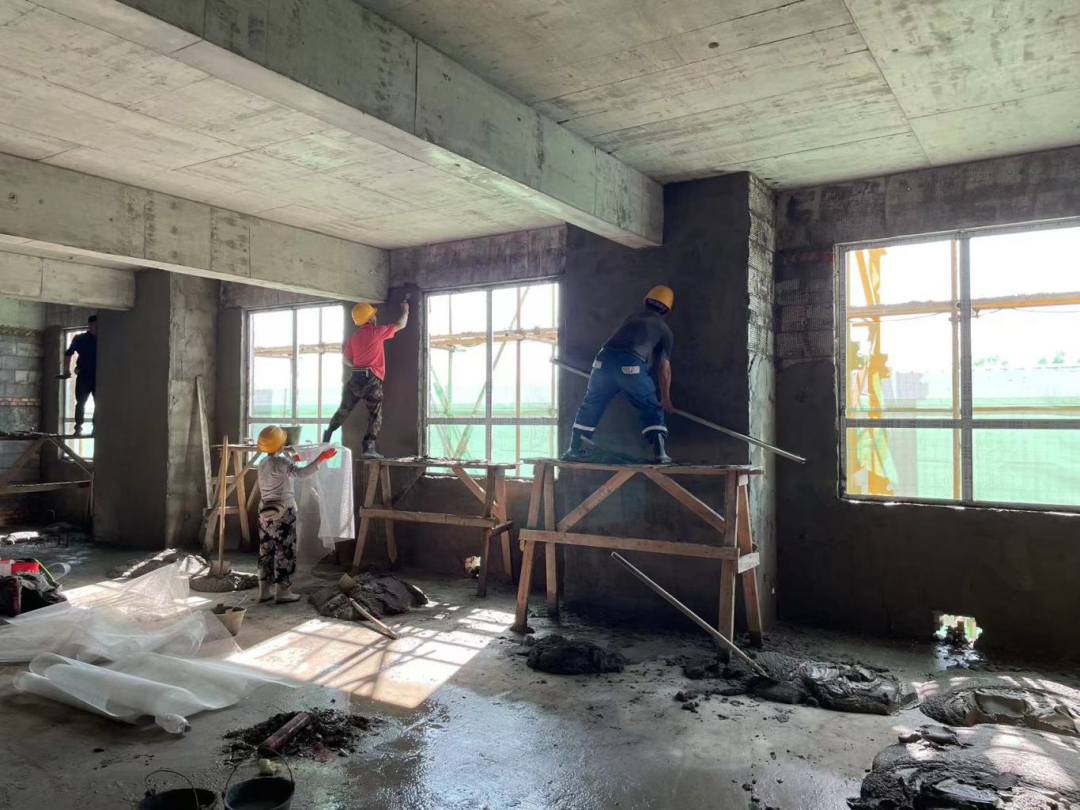 ▼4月19日-4月21日,办公楼内墙抹灰