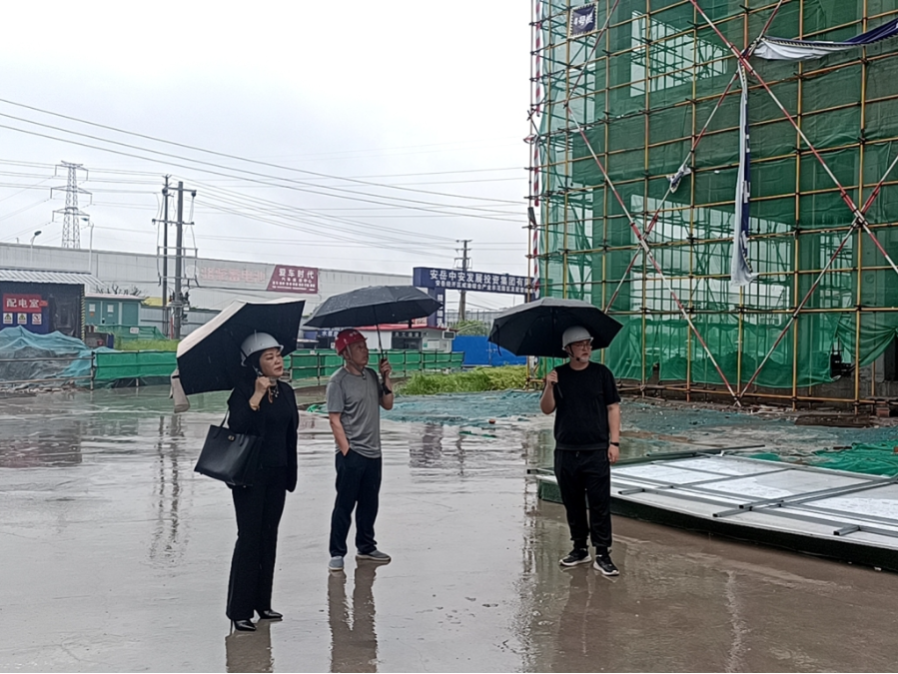 工程管理部赴经开区鞋服产业园、经开区医药产业园、冷链数商中心等项目现场开展暴雨天气后安全隐患排查整改工作。