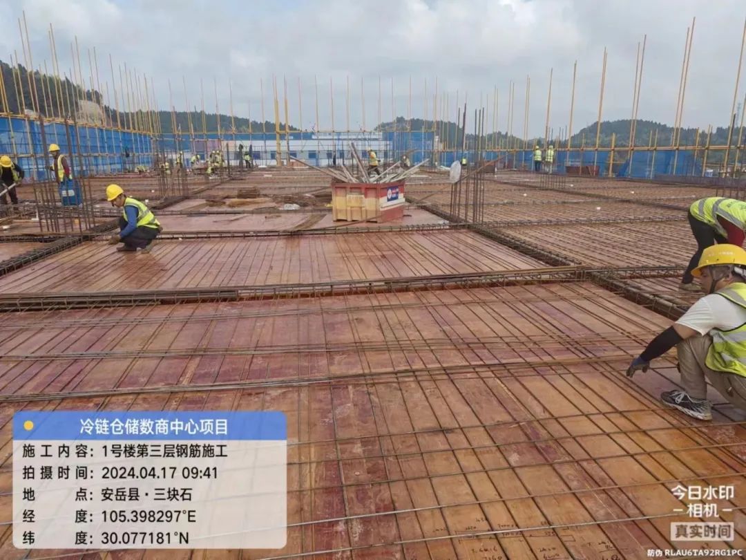 ▼4月17日-4月21日,1号楼3层钢筋施工