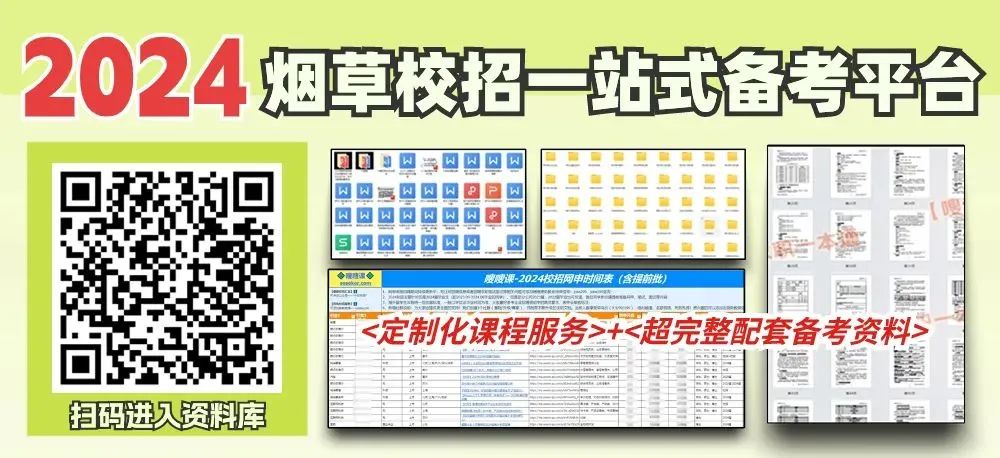 回复关键词:“烟草课程”,购买2024年最新烟草笔试面试基础精讲课、提升课、直播课。