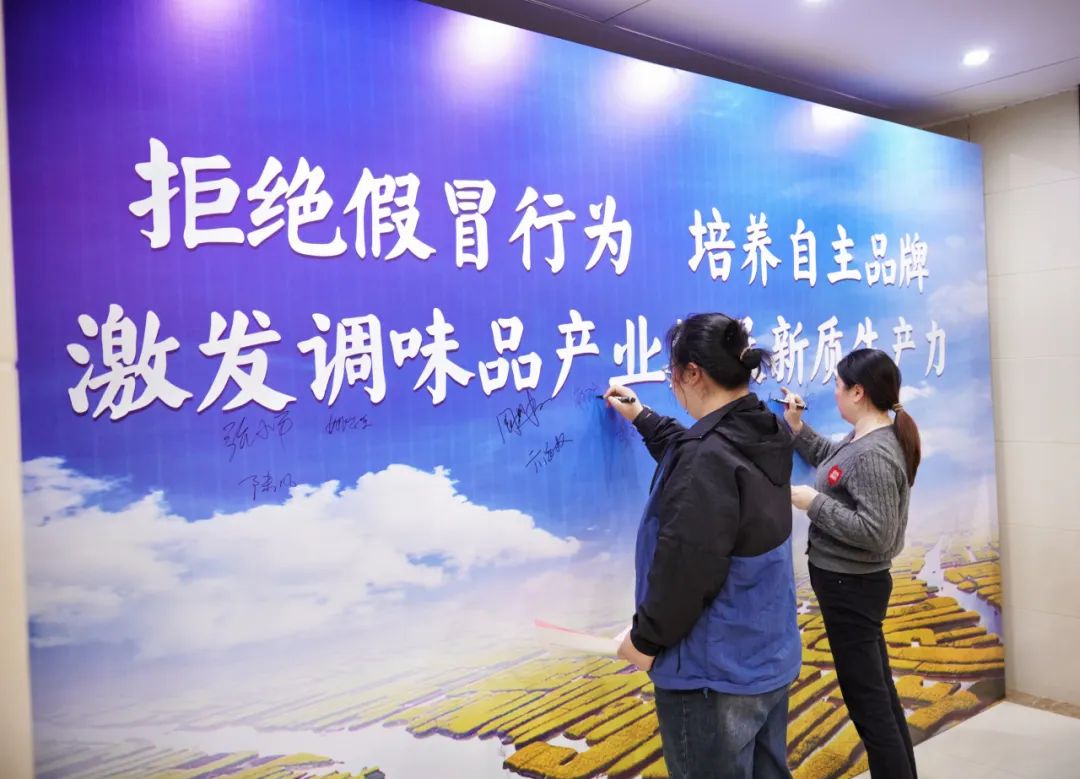 与会企业代表作为同行业从业者,对部分被告人比较熟悉,对这些身边人身边事感到触目惊心,深受教育,深受启发,他们纷纷表示将按照三点倡议,通过诚实经营和辛勤劳动,维护好兴化市调味品行业产品形象和行业商誉,共同推进兴化调味品产业高质量发展。企业代表还在主题为“拒绝假冒行为,培养自主品牌,激发调味品产业新质生产力”的宣传题板上签字。