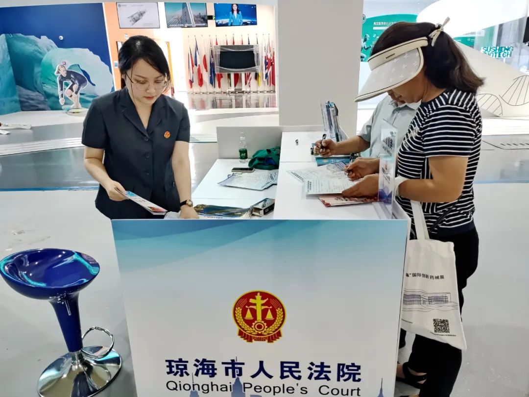 为切实做好服务保障工作,琼海法院法律服务团队聚焦知识产权保护、消费者权益保护,向展商、参展群众发放专门编制的《消博会知识产权温馨提示》《企业防范知识产权经营风险提示》《图解<民法典>》《新<消费者权益保护法>亮点解读》以及调查问卷,热心接待每一位前来咨询的群众,耐心地提供法律咨询、释法答疑。