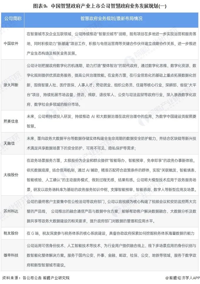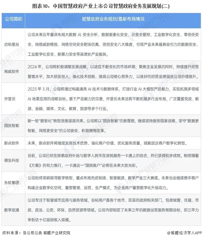 智慧政府产业上市公司业务规划对比
