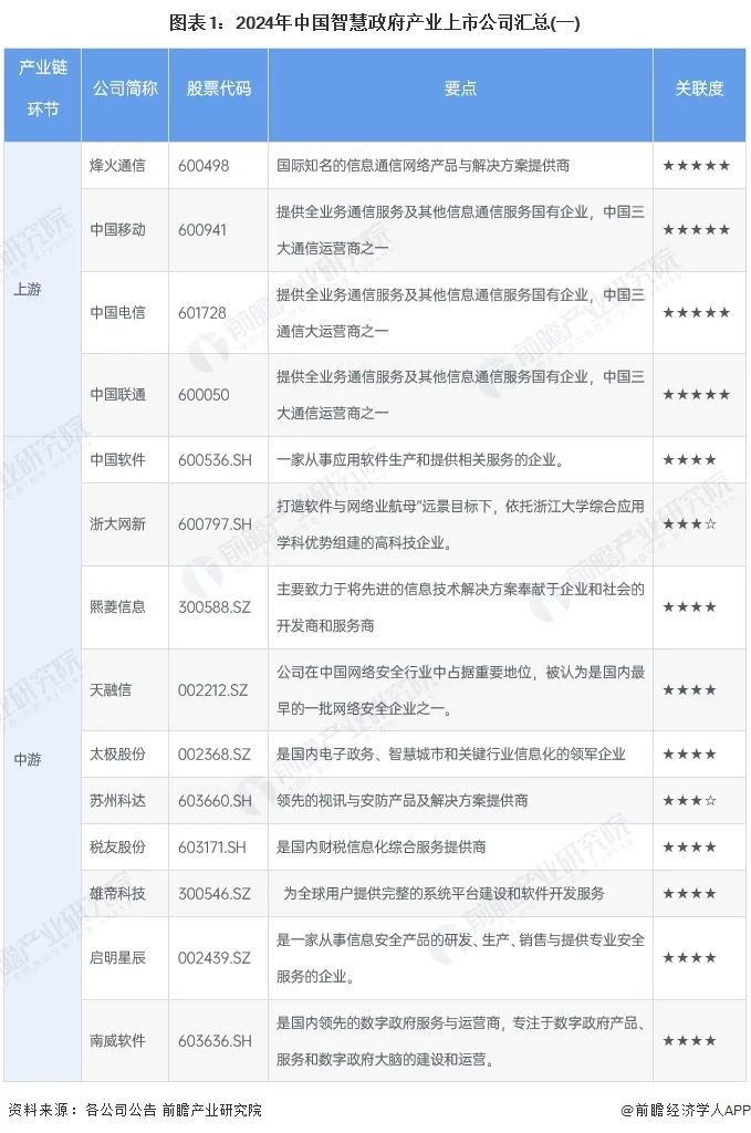 智慧政府行业上市公司汇总