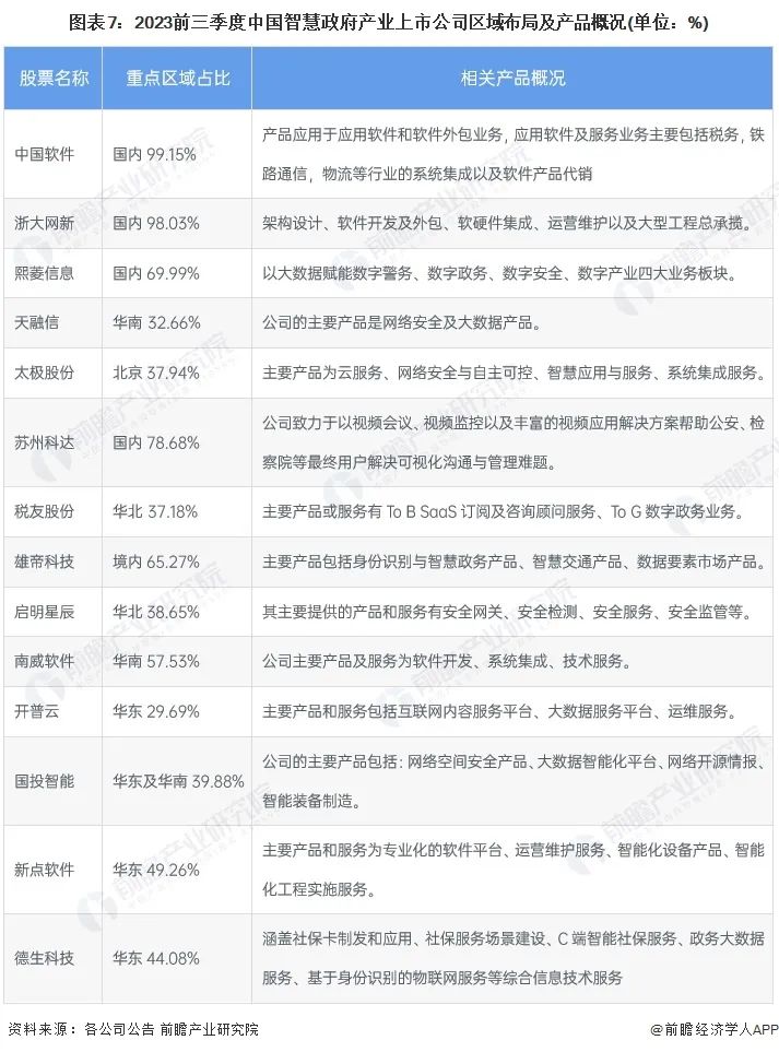 智慧政府产业上市公司区域布局对比