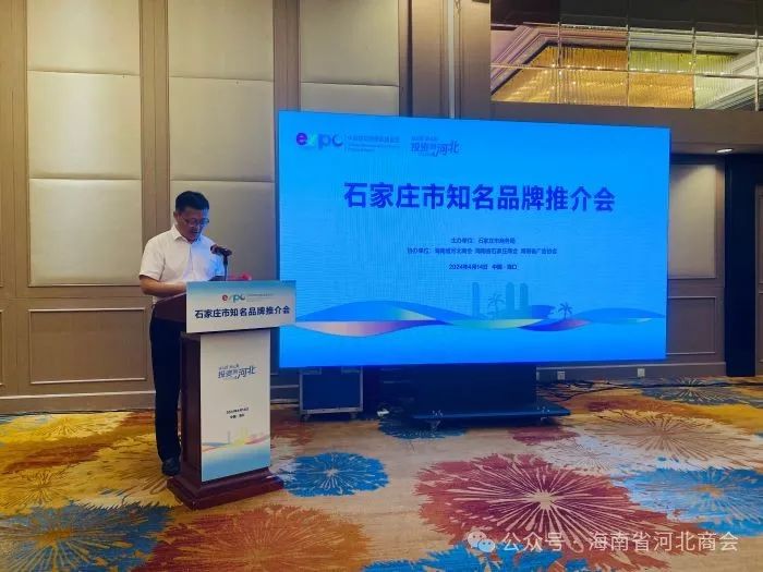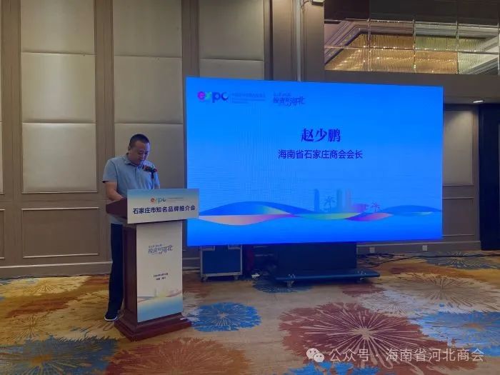 海南省石家庄商会会长赵少鹏在致辞中表示,石家庄商会愿为石家庄品牌发扬光大做出积极努力。他号召广大企业到河北省会、特大型城市石家庄投资兴业。